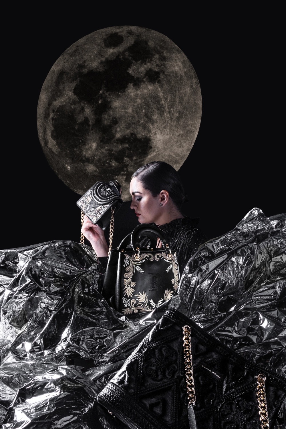 Přemýšlela jsem nad tím, co ještě vymyslet, aby byly kabelky Orion pro vás opravdu výjimečné. Chtěla jsem jim dodat nějaký wow efekt, něco nového, díky čemuž by z vás udělaly skutečnou hvězdu. A tak přišel nápad s fosforeskující nití. Zároveň se tím kolekce rozdělila na kabelky, které jsou praktické na nošení přes den, a vyšívané, které pod rouškou tmy ukážou svou druhou tvář. A vtom jsem si uvědomila, že vytvářím kolekci plnou kontrastů. Černá barva evokuje noblesu, a zároveň temnotu. Výšivku inspirovanou historií a uměním přeneseme na moderní modely. Kabelky jsou univerzální a zároveň je každá jedinečná. Světlo, tma. Den a noc.
