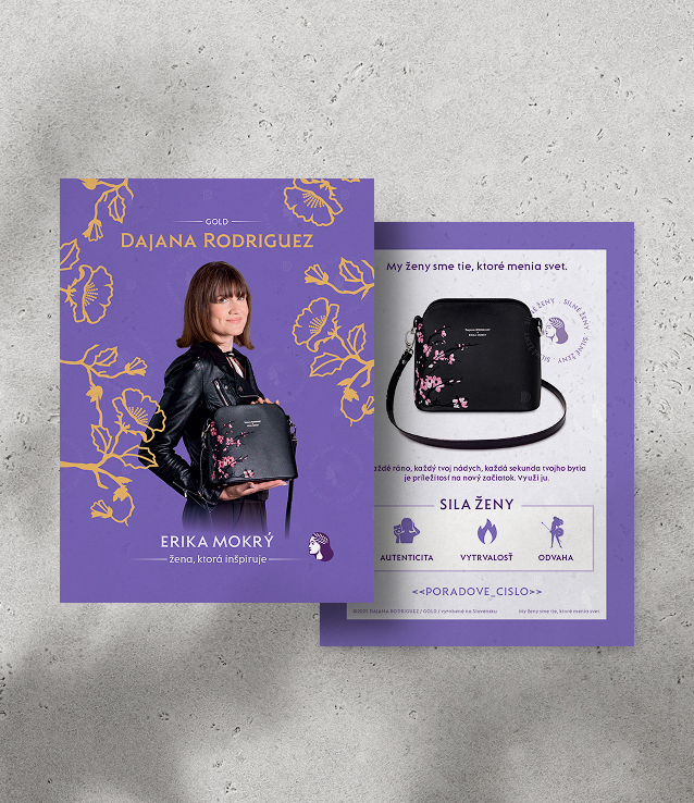 Součástí každé kabelky z této kolekce je speciální sběratelská kartička GOLD, která nese kousek Eričina příběhu – její pohled na sílu ženy a její hodnoty.